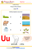 Lembar kerja menulis huruf alfabet yang selanjutnya adalah huruf U. Yuk, ajak si kecil mengenal benda-benda yang memiliki awalan huruf U, dan bagaimana cara menulis huruf U.